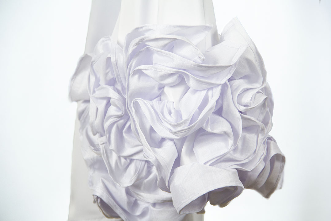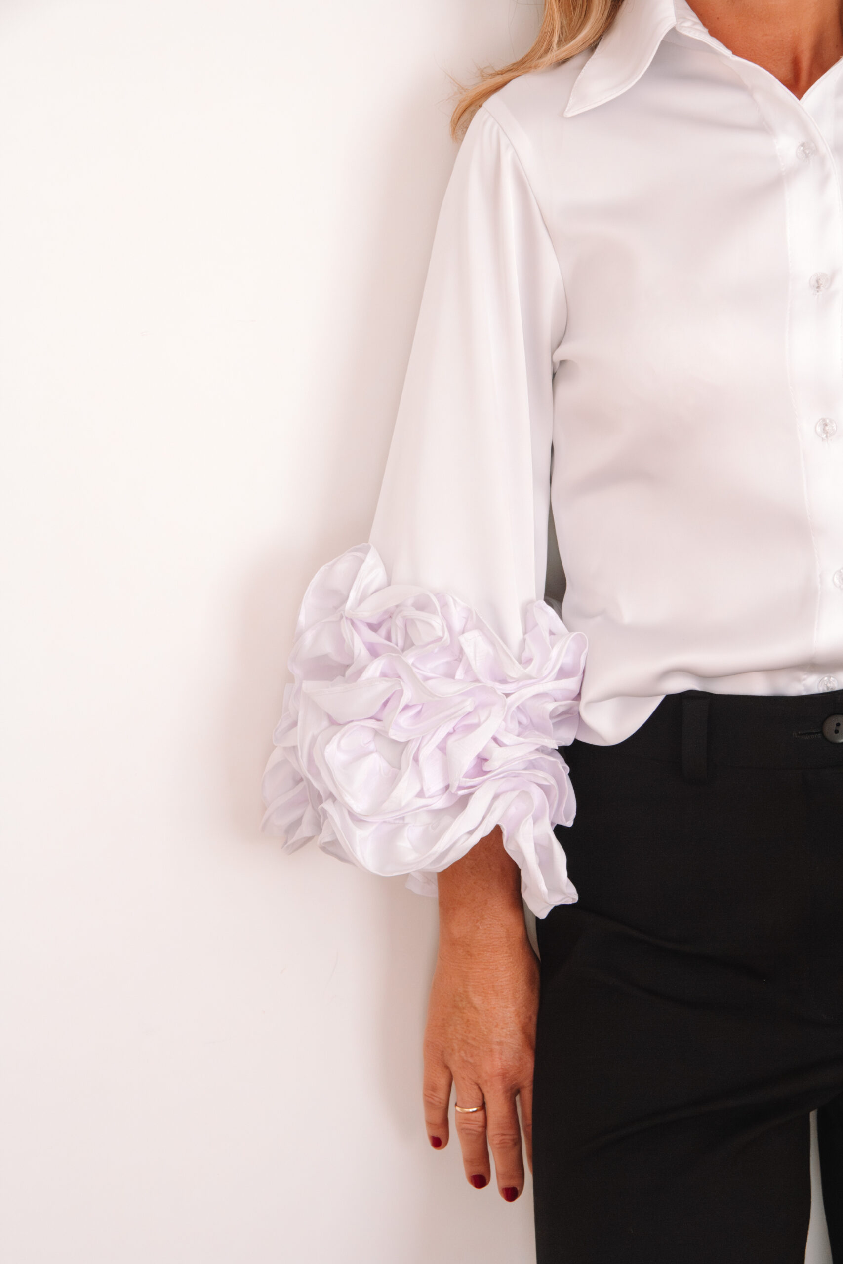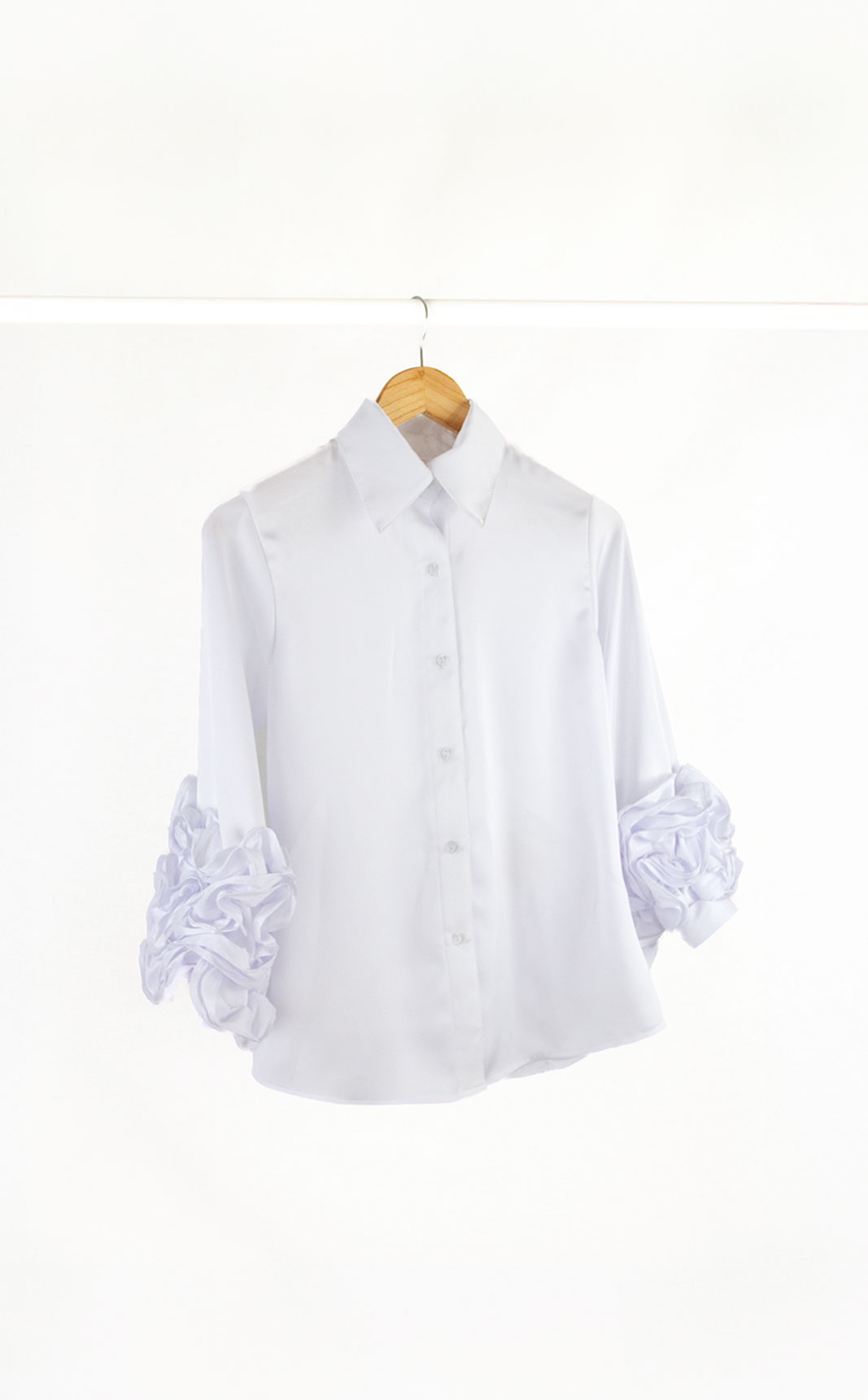 La Blusa Dafne es un reflejo de la alta costura, elaborada con una exquisita combinación de seda y tafetán. Sus mangas, decoradas con ruchos, han sido cuidadosamente diseñadas para aportar volumen y un aire de sofisticación, perfecta para una mujer de gran personalidad y estilo.