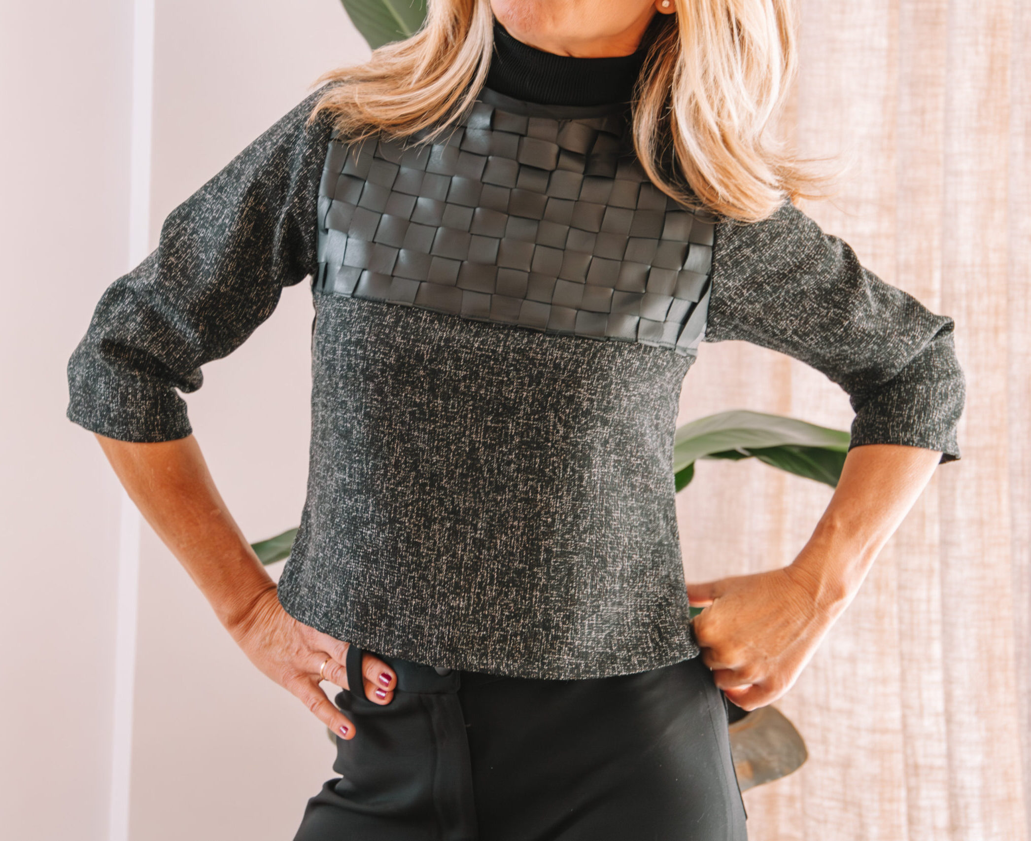 Confeccionado en tela jaspeada y trenzado en cuero a mano, el Buzo Lluvia Suave Trenzado es una pieza que equilibra lo clásico y lo moderno. Su diseño detallado resalta la artesanía detrás de cada puntada, asegurando exclusividad en cada uso.