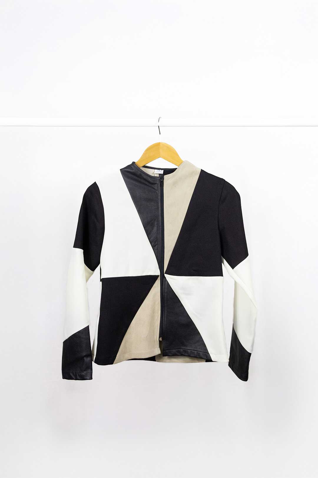 Una pieza que desafía lo convencional, el Buzo Retazos Nieve mezcla cuero, pomadora y moet en un diseño atrevido. Sus contrastes de texturas y la disposición de los materiales lo convierten en un must para quienes valoran la exclusividad en cada detalle.