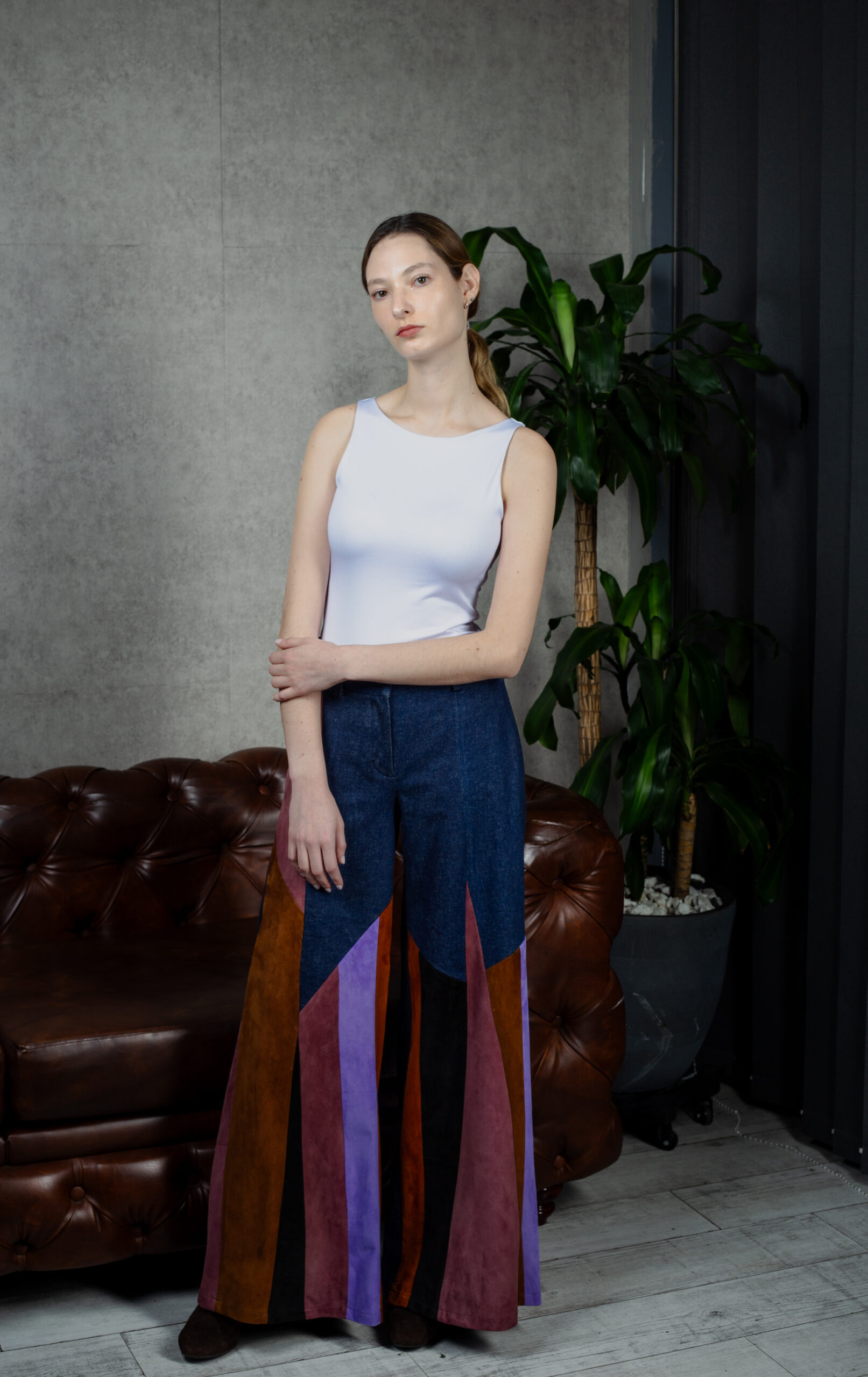 El Jean Juglar es una pieza vibrante y expresiva que celebra el color y la textura. Su base en denim se enriquece con tiras en gamuza de vaca en una paleta de tonos contrastantes, creando un diseño dinámico y lleno de movimiento. La silueta amplia realza su carácter artístico, convirtiéndolo en una prenda ideal para quienes buscan autenticidad y estilo en cada paso.