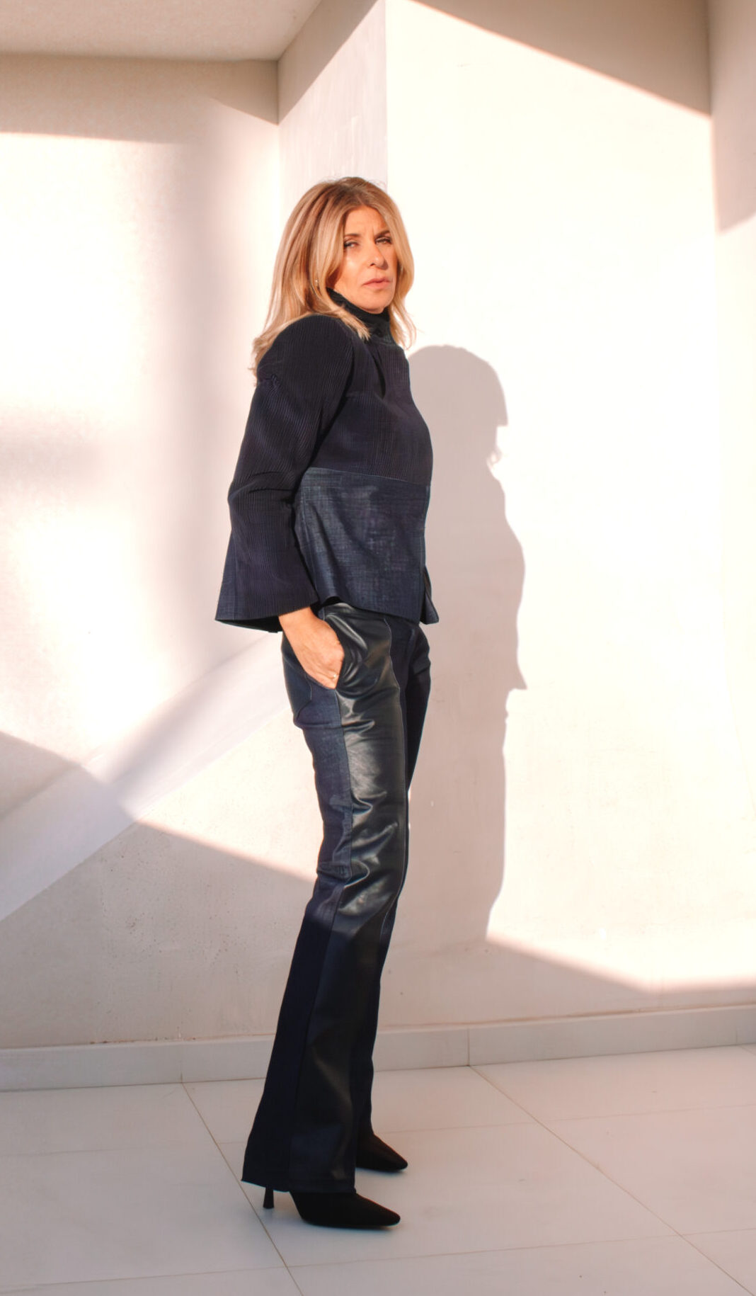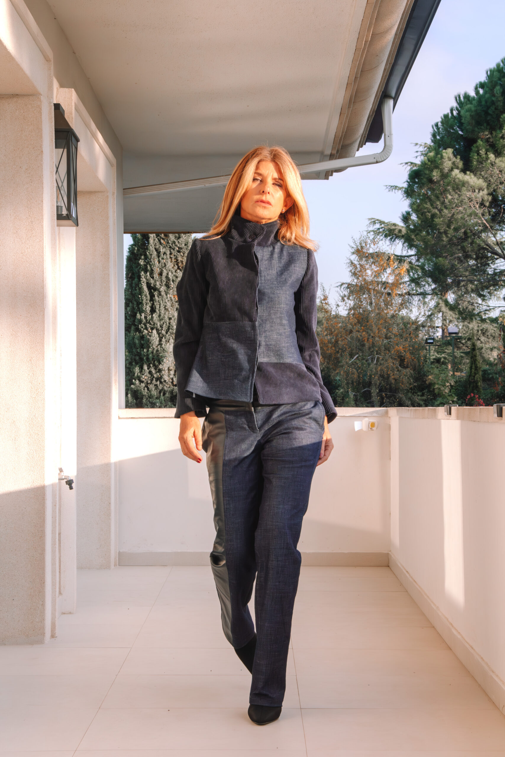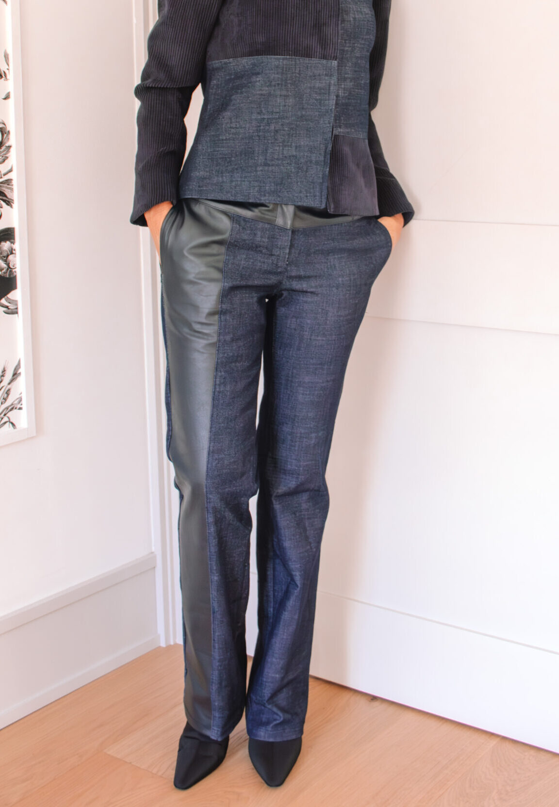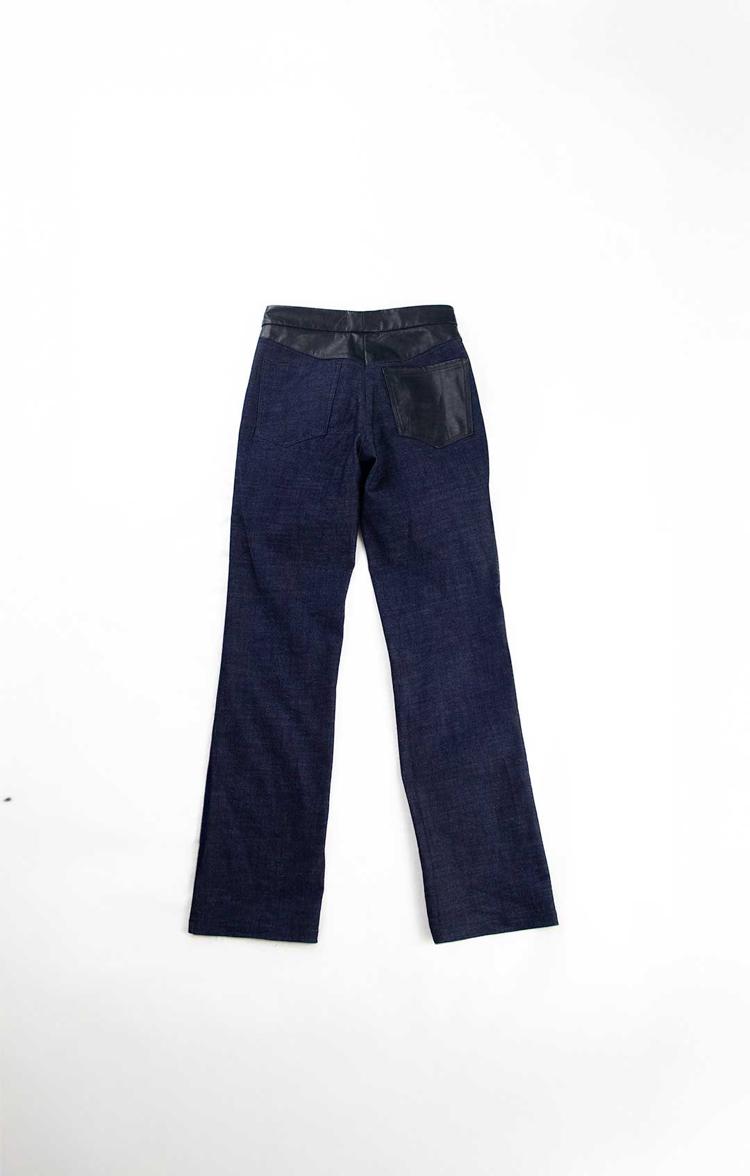 El Jean Sauco es una fusión perfecta de denim oscuro y cuero. Media pierna y cotilla en cuero, este jean ofrece un ajuste cómodo y elegante. Un bolsillo en cuero y otro en denim complementan su diseño sofisticado.