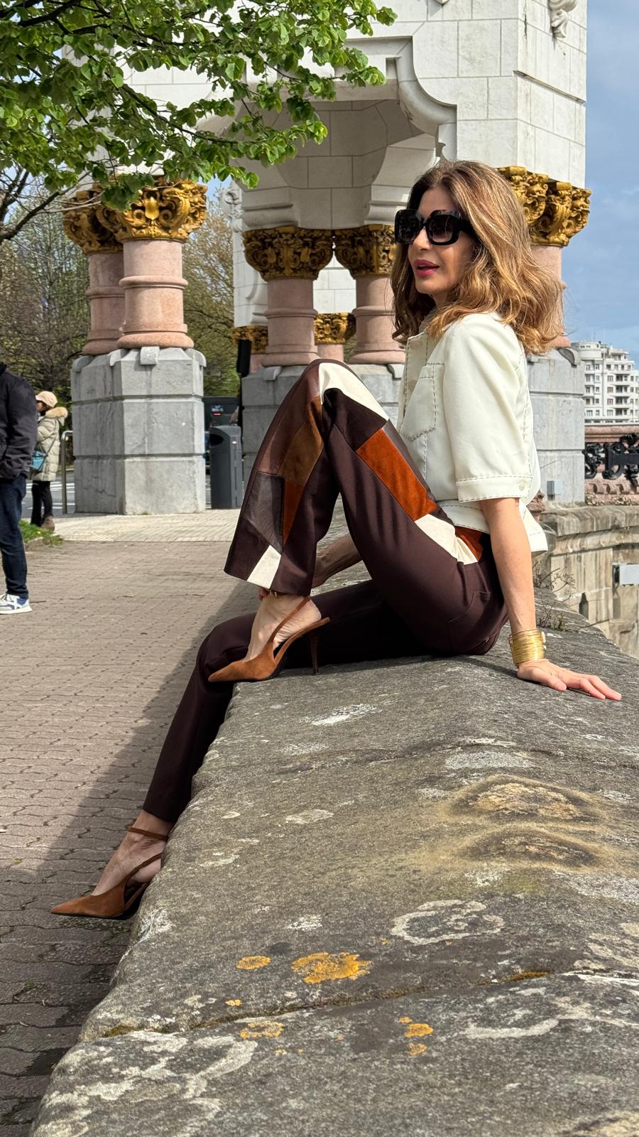 El Pantalón Vitral es una pieza de diseño arquitectónico y refinada presencia. Confeccionado en pomadora, su estructura otorga una caída fluida y una silueta alargada que estiliza con naturalidad.