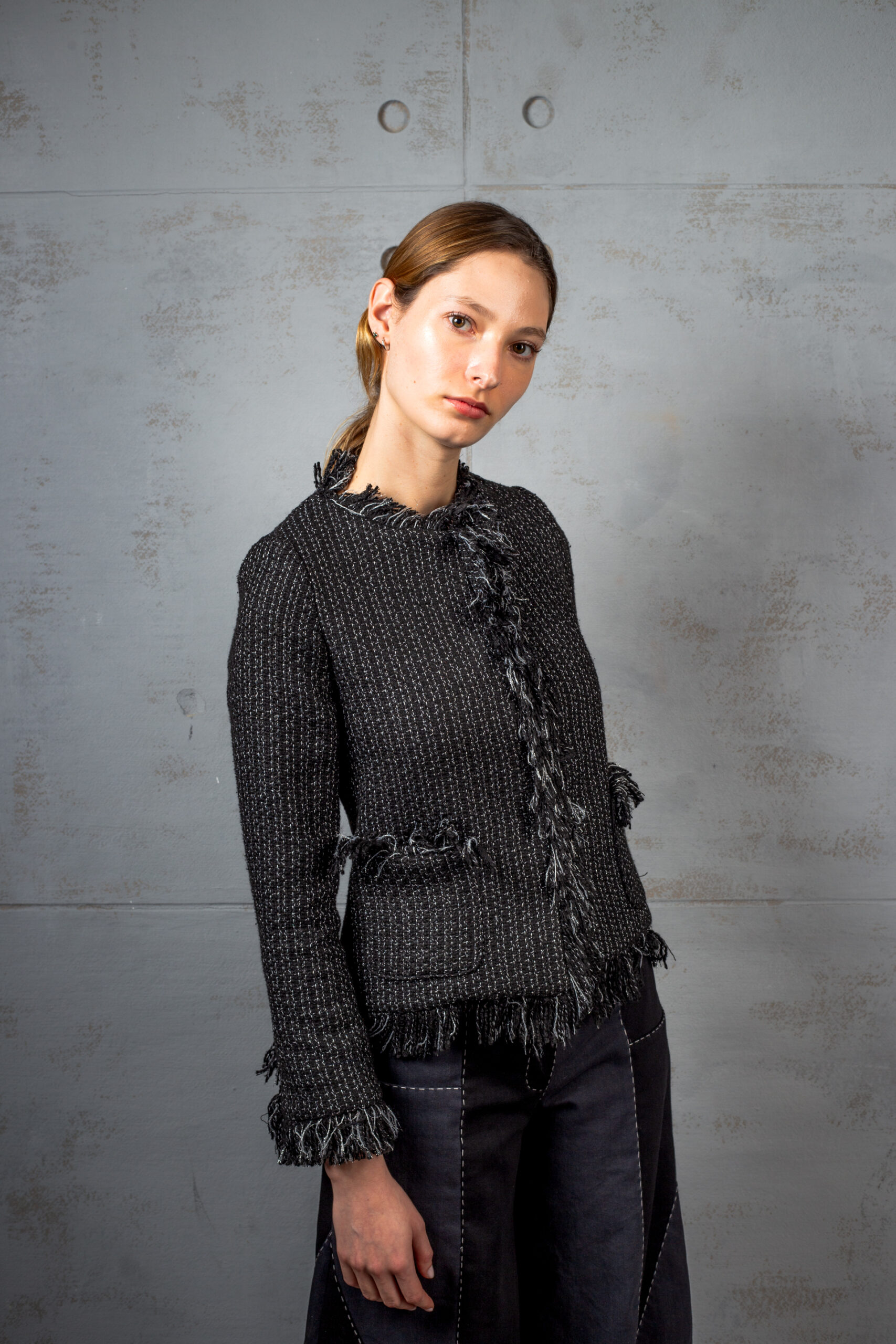 $720,000RF: CHA013 La chaqueta jazmine está elaborada en una fina tela tipo Chanel de tono negro, que aporta textura, elegancia y un […]